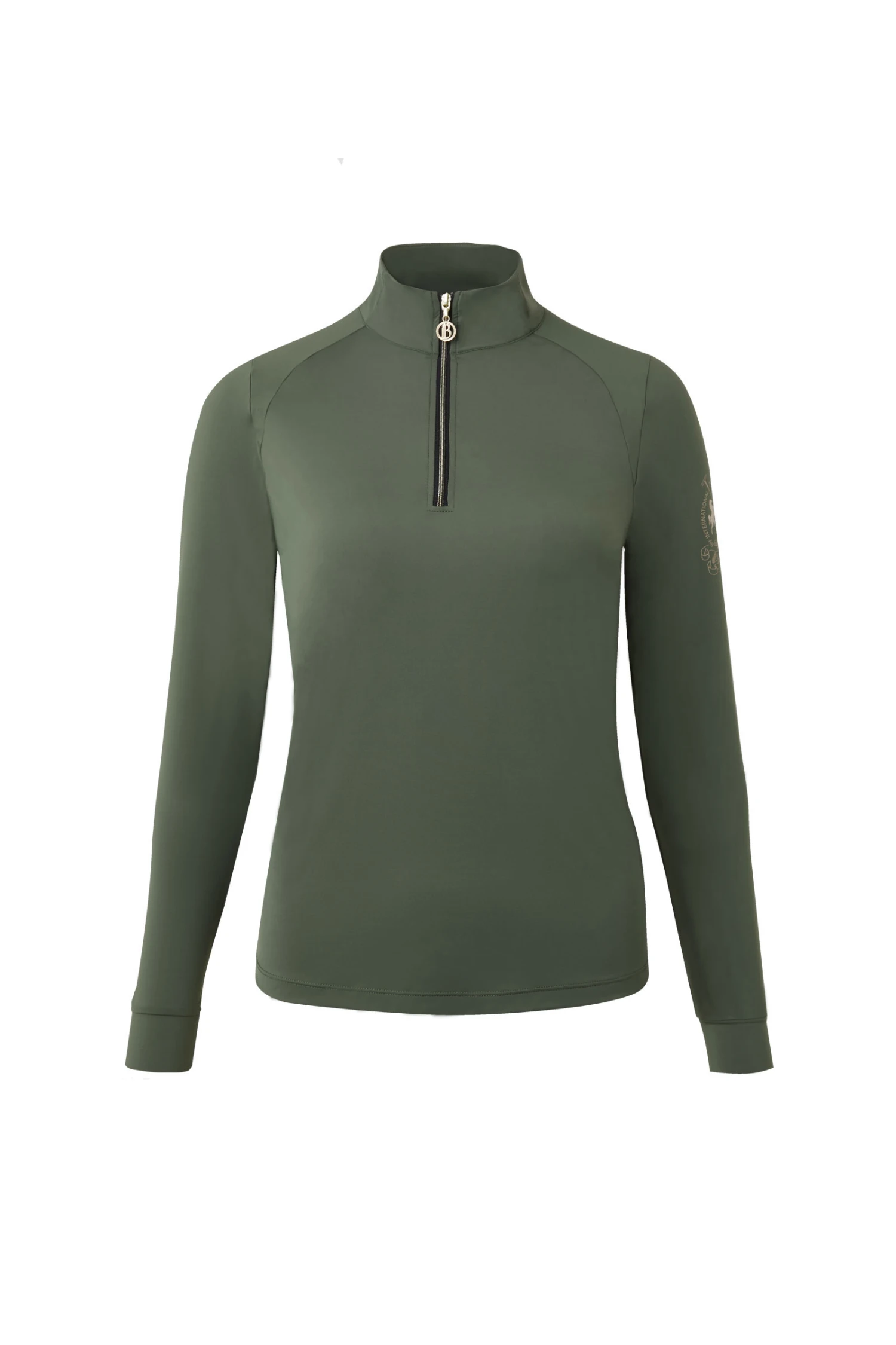 Perfektes Trainingsshirt für den Lagenlook oder Frühlingstage dank des feuchtigkeitsableitenden Materials, das sich kühl auf der Haut anfühlt und einen UV-Schutz hat. Das Mesh unter den Achseln sorgt für erhöhte Atmungsaktivität. Ein zarter goldener B Vertigo-Schriftzug unterhalb des Nackens und das Logo auf dem linken Ärmel runden das edle Design ab. Dazu passender hellgoldener Reißverschluss.