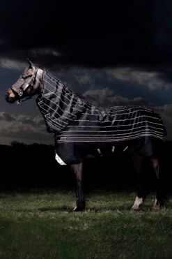 Die Decke kann, wenn erforderlich, für 24 Stunden und 7 Tage die Woche von dem Pferd getragen werden, da es sich NICHT um eine magnetische Decke handelt. Es wird jedoch empfohlen, den Gebrauch der Therapy Decken langsam zu steigern und zu überwachen, da die Eigenschaften des Materials die Muskeln erwärmen und das Pferd bei längerem Gebrauch der Decke zu schwitzen beginnen kann. Zudem werden der Regenerations-Prozess bzw. die Erholungsphasen auf natürliche Weise beschleunigt. Das seidige Dermo-Care Innenfutter mit feuchtikkeitstransportierenenden Eigenschaften, hält das Pferd trocken sowie das Fell glatt und geschmeidig. Die Turnout Decke ist mit dem patierten Clickn Go-System mit Magnet Snap Lock Verschluss ausgestattet.