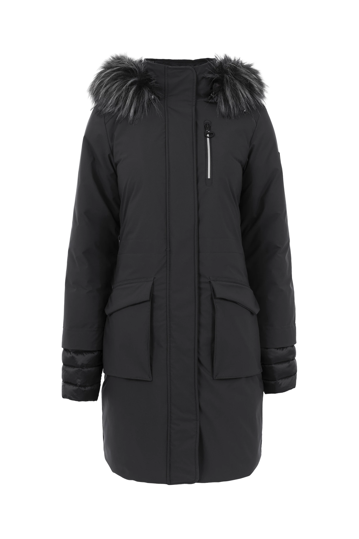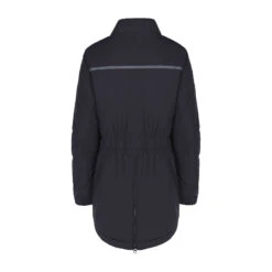 Mit abnehmbarer Kapuze mit Kunstfellkranz. Steppdessin innenliegend, nur am Ärmelsaum außen sichtbar. Zwei aufgesetzte 2-Wege-Taschen vorne mit seitlichem und oberem Eingriff. Brusttasche links mit reflektierendem Reißverschluss. 2-Wege Reißverschluss in der vorderen Mitte. Frontreißverschluss und Brusttaschen Reißverschluss mit Cavallo Schmuckanhänger mit Kristall. Reißverschlussinnentasche. Weitenverstellbar durch innenliegenden Taillenkordelzug. Großes, tonales Cavallo Artwork seitlich. Großer Cavallo Print auf der Rückeninnenseite. Ein langer Reißverschluss in der hinteren Mitte ermöglicht das Tragen während des Reitens.