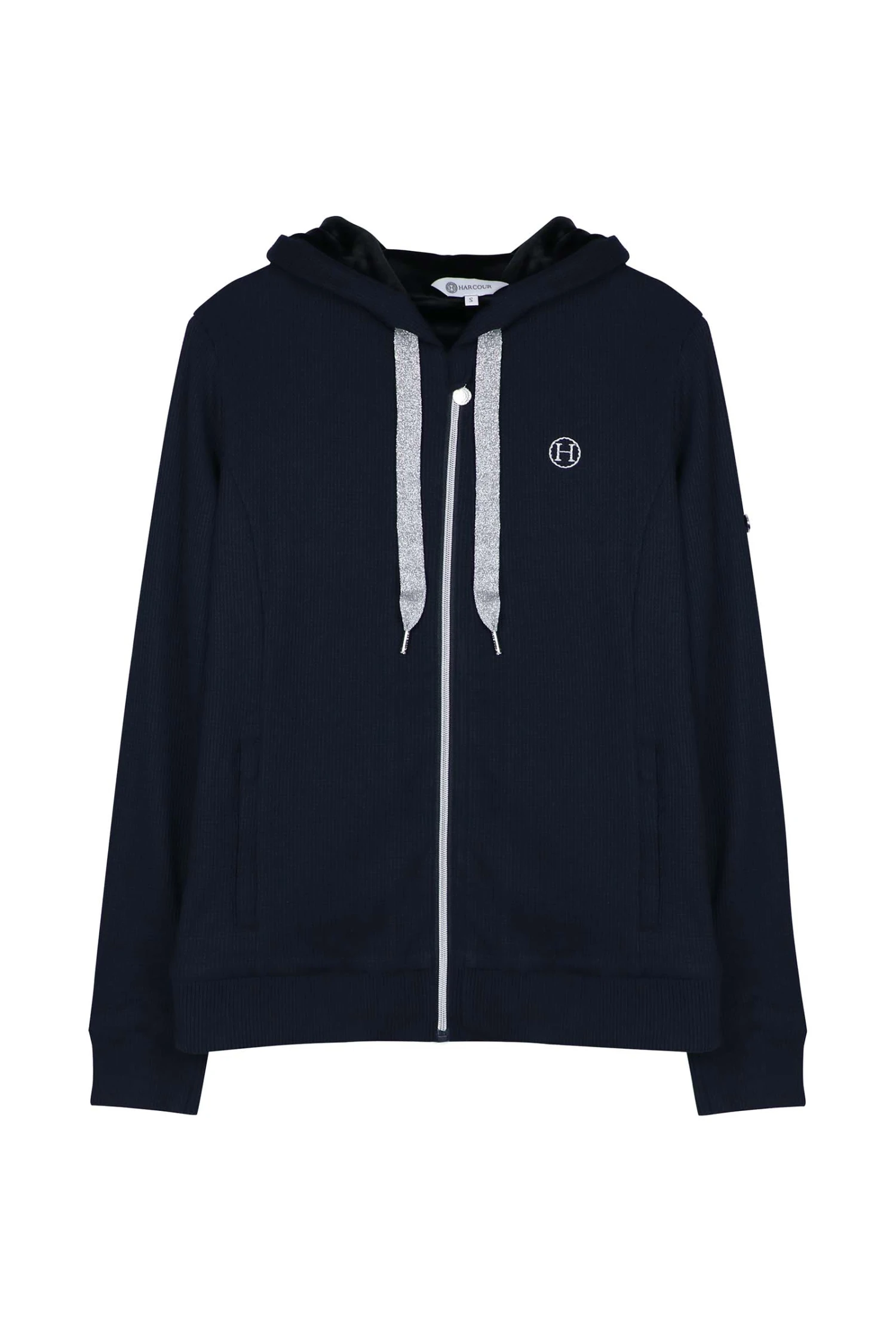 Dieser Hoodie für Damen ist aus Waffel-Baumwollstoff für einen modernen und lässigen Look. Sein Kunstfell-Innenfutter wird dein bester Verbündeter sein, um warm zu bleiben! Dank des durchgehenden Reißverschlusses lässt sich dieses Sweatshirt beim Reiten oder beim Sport leicht an- und ausziehen. Die silbernen Kordelzüge und das Harcour-Logo machen es extrem trendig.
