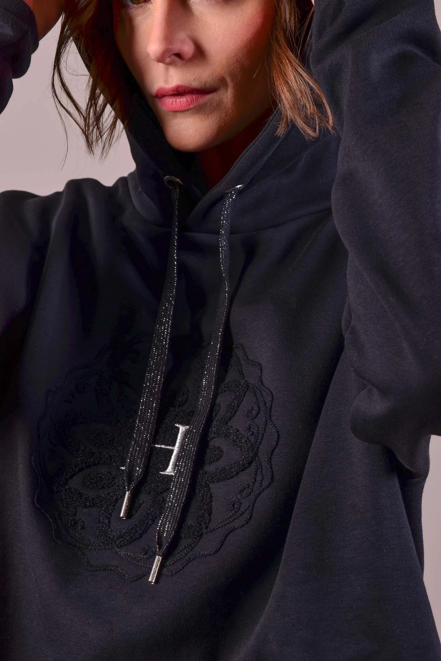 Der Swity Hoodie besteht aus Baumwolle und Polyester und kombiniert Weichheit und Komfort. Die lockere Passform sorgt für einen Sportswear-Look und das Rosettenlogo verleiht ihm einen einzigartigen und femininen Schnitt. Mit Jeans, Reithosen oder sogar Leggings kann er in allen Lebenslagen getragen werden.