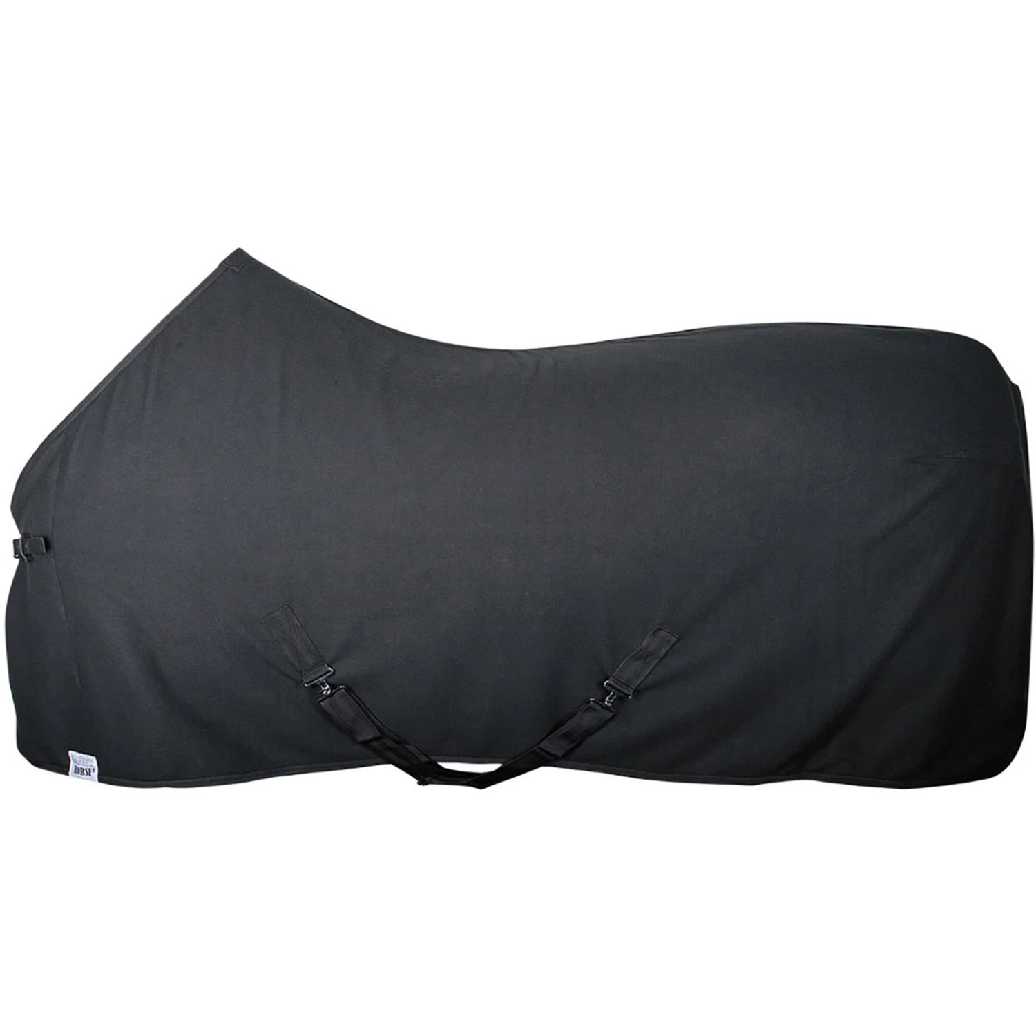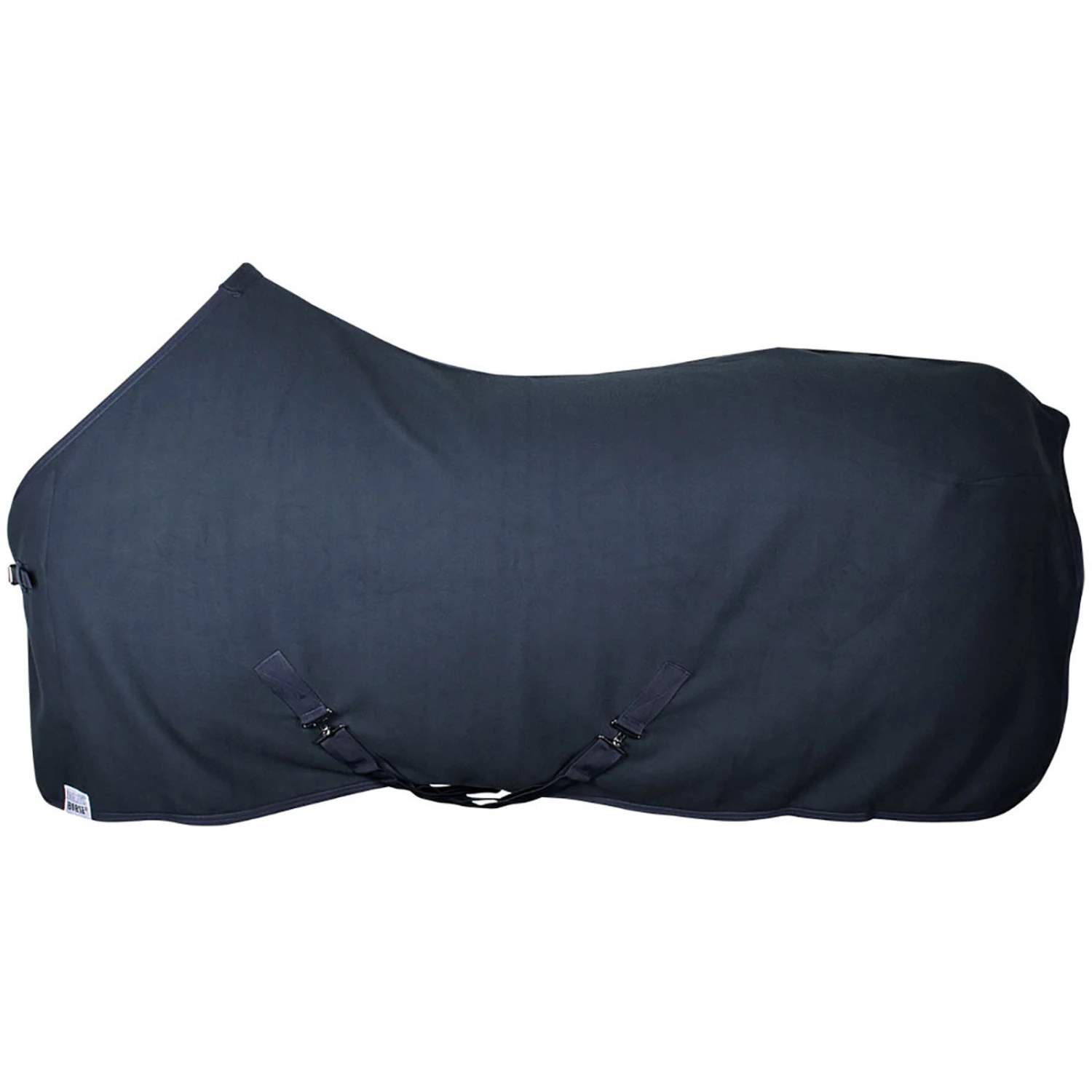 Fleecedecke mit einem Brustverschluss, Schweifriemen und Kreuzbegurtung.