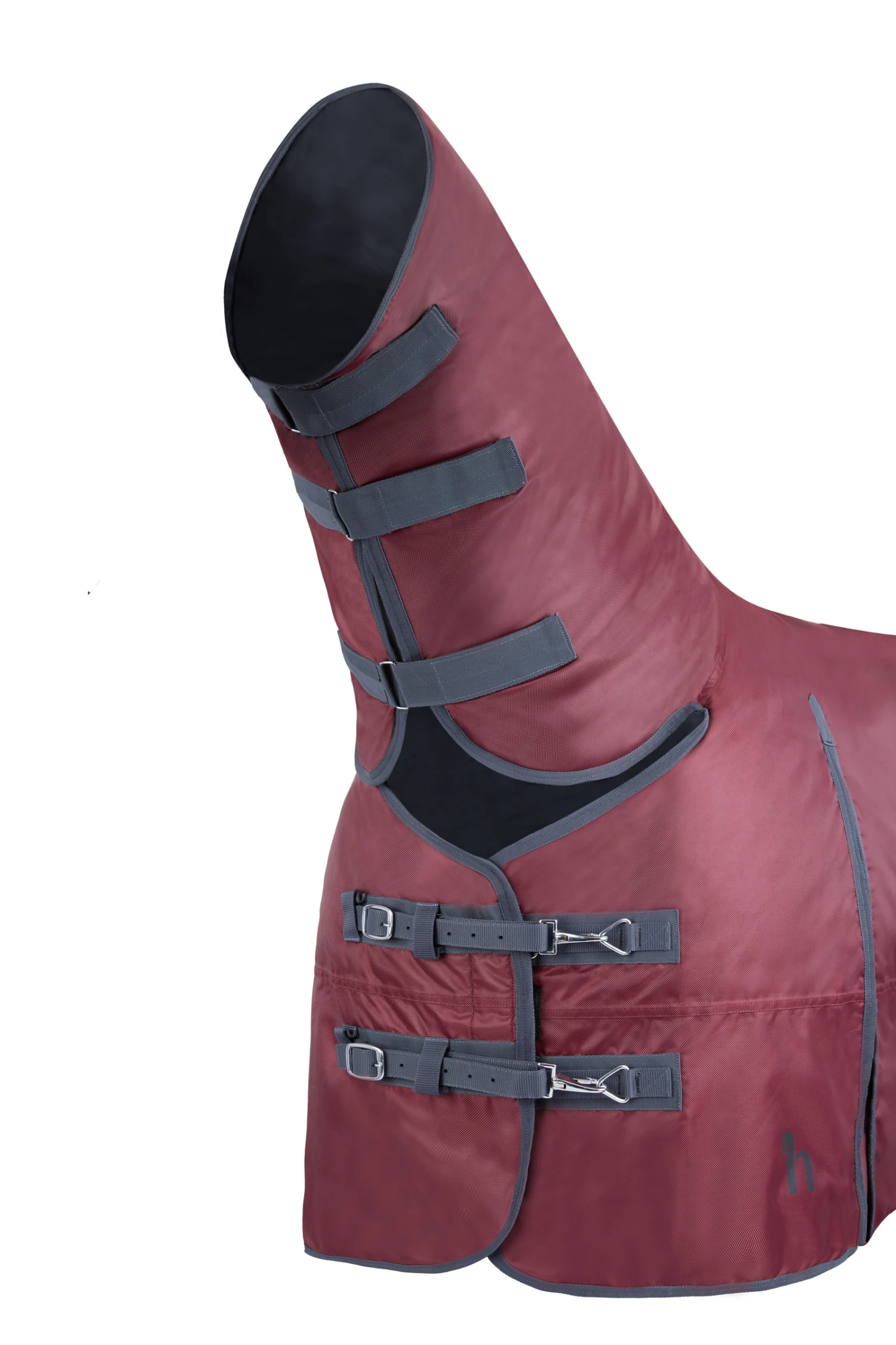 Decke dein Pferd mit dieser robusten Decke ein, um es vor Kälte und Regen zu schützen. Sie ist mit zwei Vorderschnallen, Beinriemen, Kreuzgurten und einem Schweiflatz ausgestattet. Hohe Gehfalten schränken die Bewegungsfreiheit deines Pferdes nicht ein. Das Halsteil schließt leicht mit Klettverschlüssen. Auch mit 300g Füllung oder ohne Halsteil erhältlich.