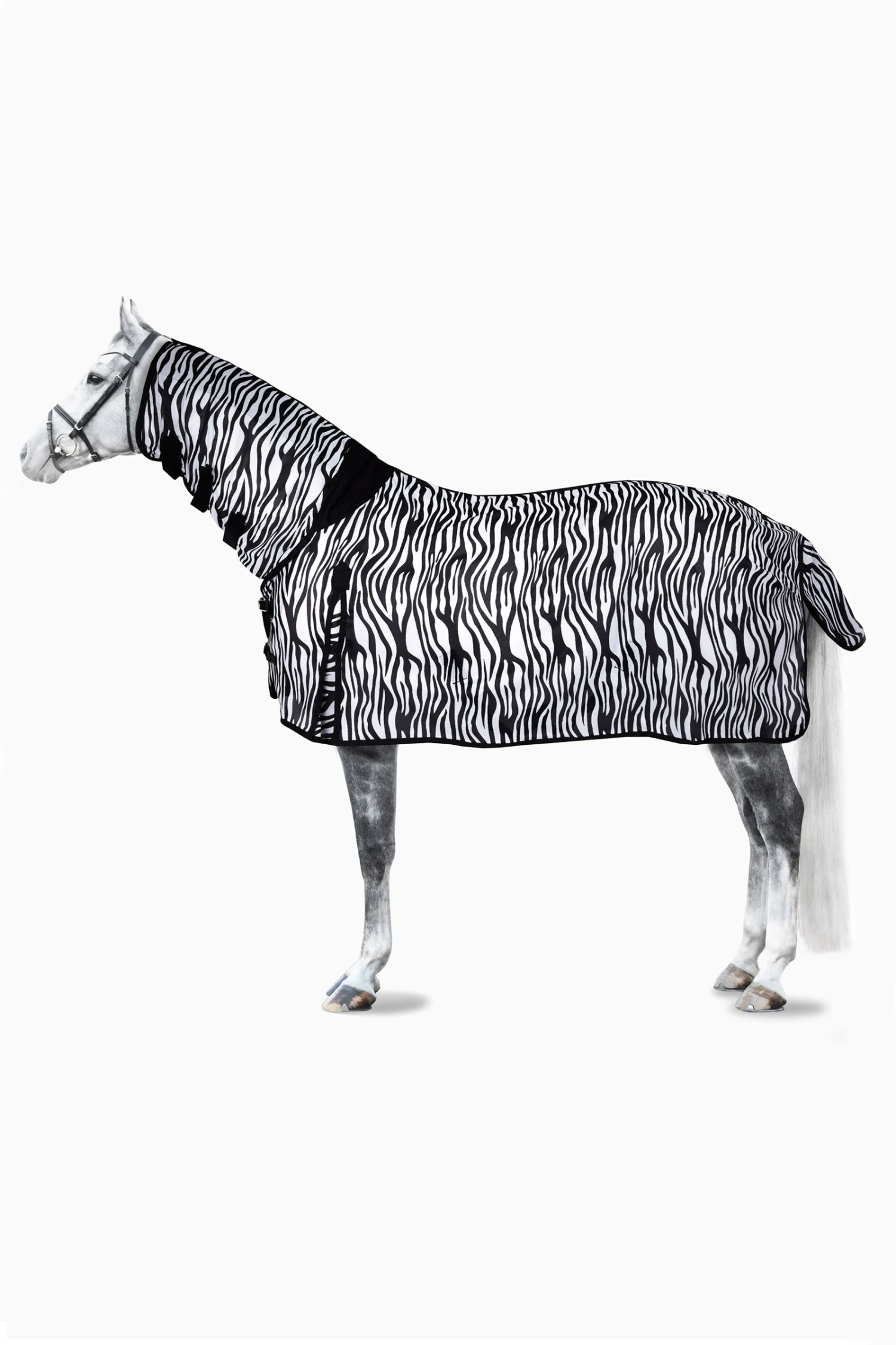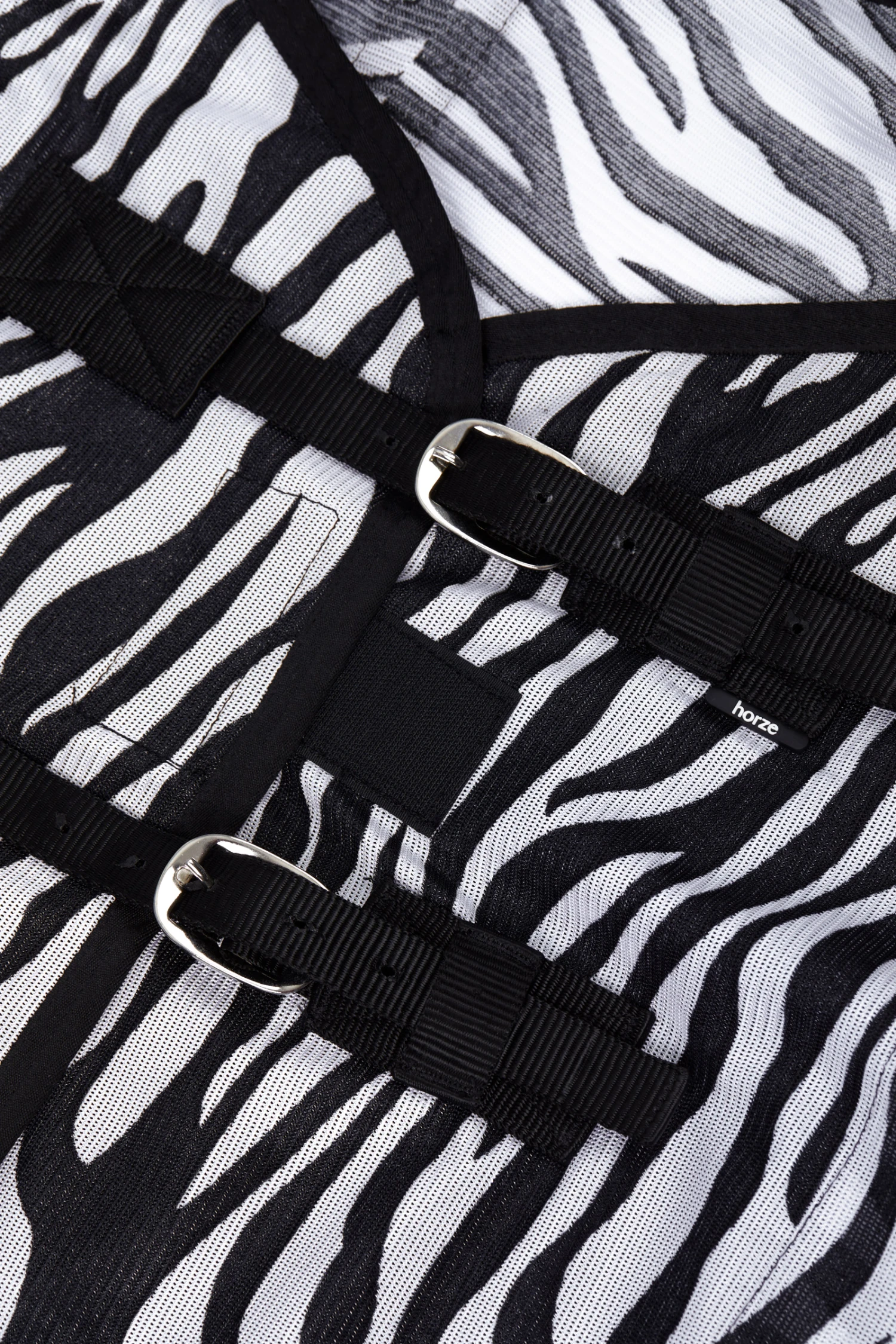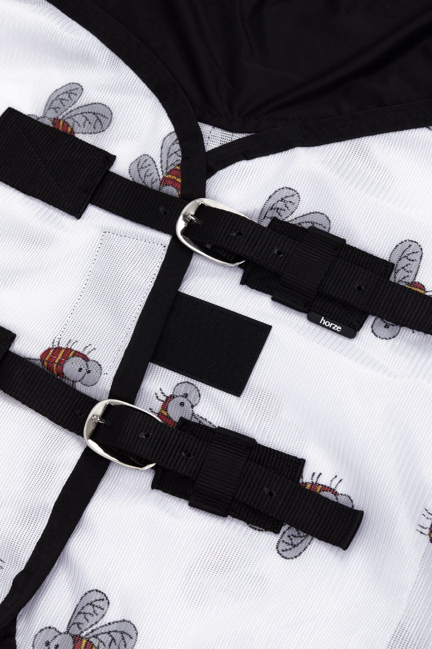 Die Horze Defender Fliegendecke schützt dein Pferd in Sommer von Hals bis Schweif vor Insekten. Elastik zwischen Decke und Halsteil sorgt für Komfort. Das Halsteil kann mit einem Klettverschluss fixiert werden und bietet die Option für eine Fliegenmaske. Hohe Gehfalten schränken die Bewegungsfreiheit deines Pferdes nicht ein. Frontverschlüsse, Kreuzgurte und Schreifriemen halten die Decke an ihrem Platz.