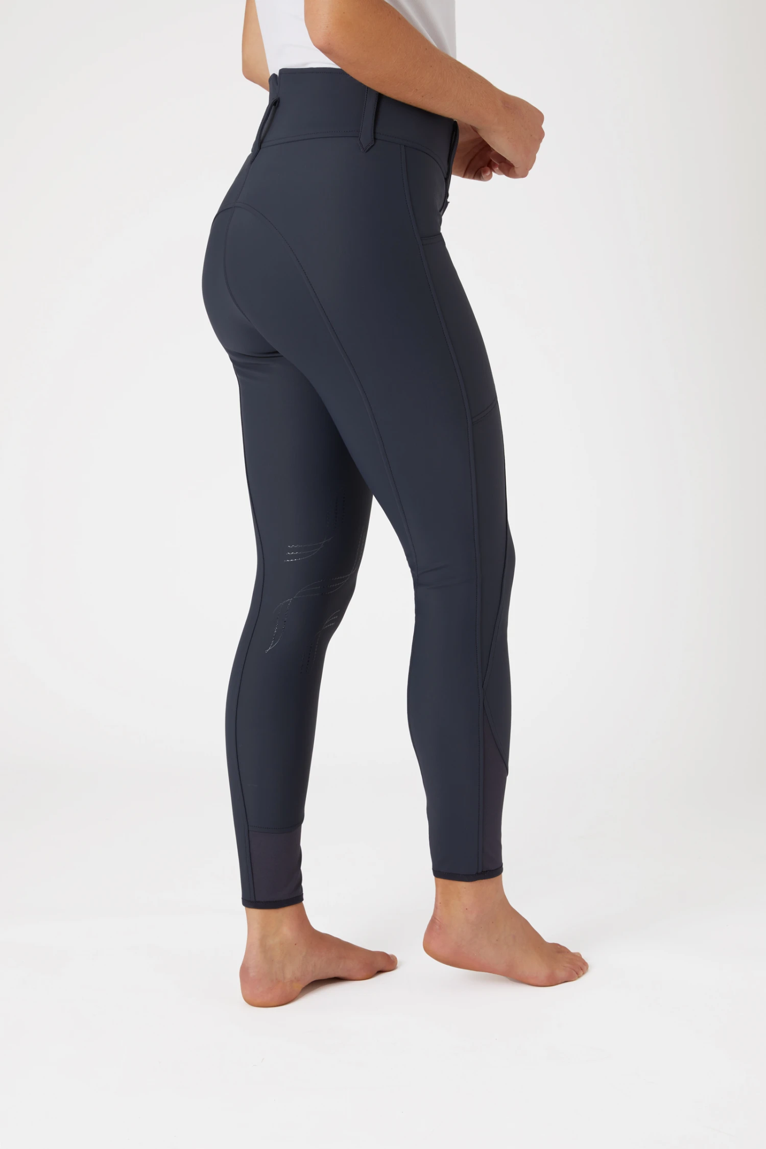 Schmeichelhafte Reithose mit Silikonkniebesatz und hohem Bund.