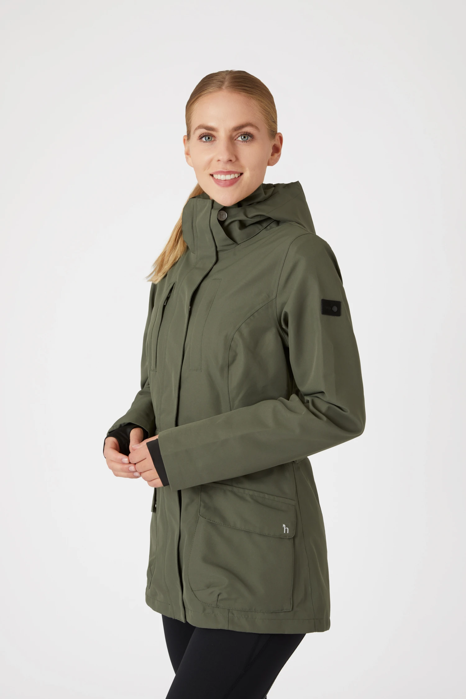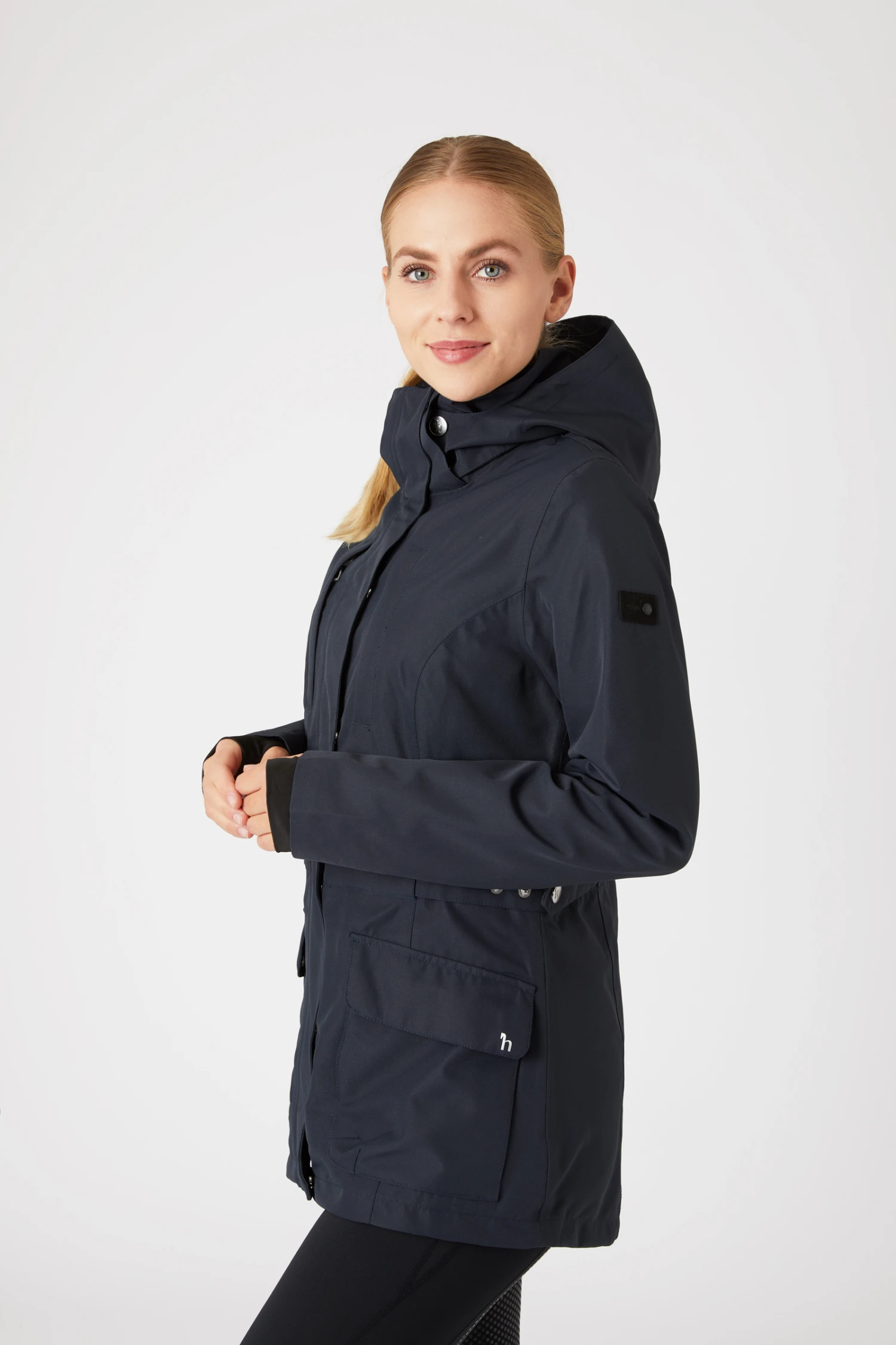 Ein stilvolles Design mit einer anliegenden Taille verleiht dieser Damenjacke einen schönen, individuellen Look. Die Taschen verstauen alles von Pferdeleckerli bis hin zu Schlüsseln und Handy. Das Horze Emblem auf der Schulter und feine Details wie Druckknöpfe und starke Nylonreißverschlüsse machen diese Qualitätsjacke langlebig und funktional sowie wunderschön. Das Material ist atmungsaktiv und wasserdicht und schützt dich vor warmen Sommerschauern. Der hintere Schlitz hilft, den Sattel zu schützen und erlaubt viel Bewegungsfreiheit. Die raffinierten Farben passen zu vielen Artikeln der saisonalen Kollektion.