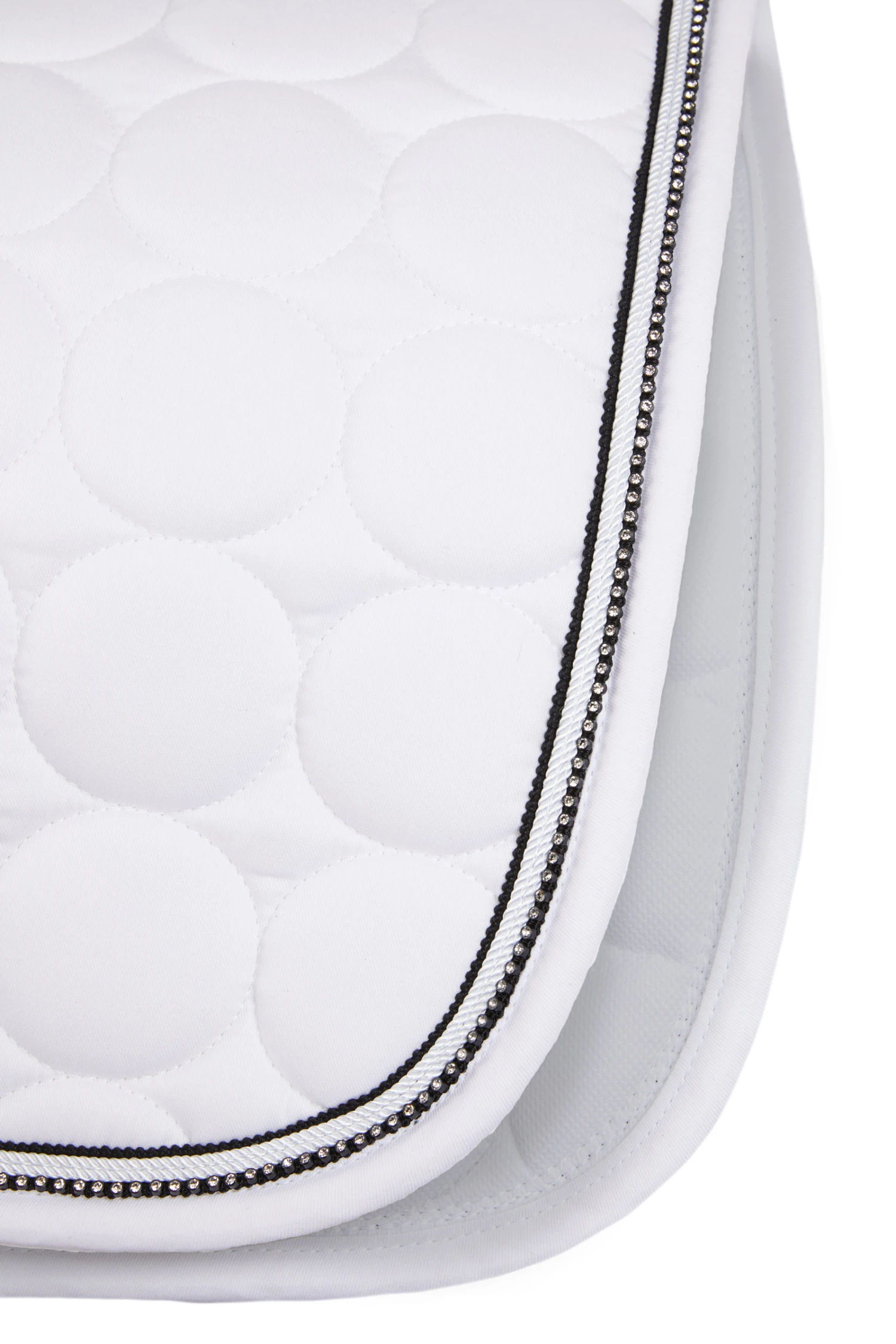 Die Horze Marquess Schabracke ist mit schnelltrocknendem Futter ausgestattet, das Feuchtigkeit effektiv ableitet. Die weiche Polsterung sorgt für eine bequeme Passform. Der Rand ist mit glitzernder Kordel und Kristallen besetzt und sorgt für die richtige Dosis an Glitzer. Kombiniere sie mit der Marquess Fliegenhaube (#22924) für einen kompletten Look.