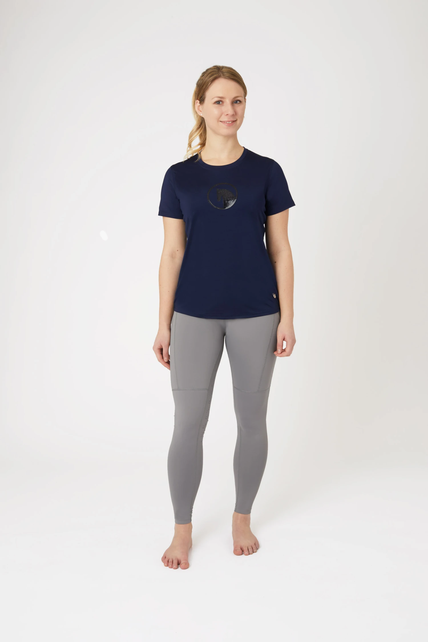 Dieses schlichte, funktionelle Modell hat ein großes Logo in glänzendem Metallic-Druck auf der Brust. Das atmungsaktive, schnell trocknende Mikrofasergewebe ist hautfreundlich und pflegeleicht. Eine perfekte Wahl, wenn du ein Basic in deiner Reitgarderobe haben möchtest.