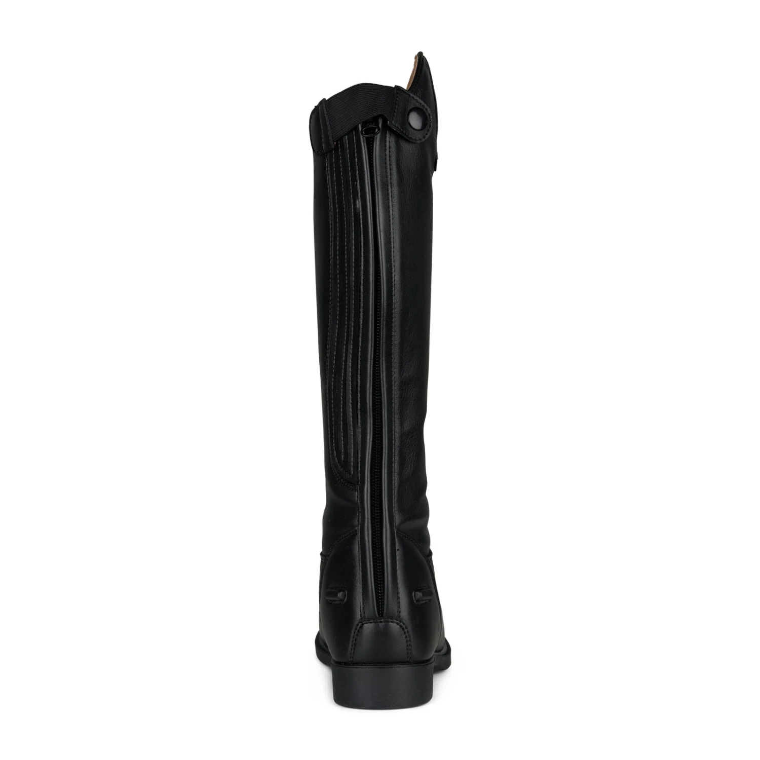 Diese Reitstiefel bestehen aus weichem synthetischem Leder mit atmungsaktivem Mesh Futter. Der Reißverschluss hinten erleichtert das Anziehen und ein Druckknopf hält sie sicher geschlossen. Eine bequeme Sohle sorgt dafür, dass Kinder die Stiefel den ganzen Tag lang tragen können – im Sattel, Paddock oder im Stall. Das klassische Design ist zeitlos und passt perfekt zu den Outfits junger Reiter.